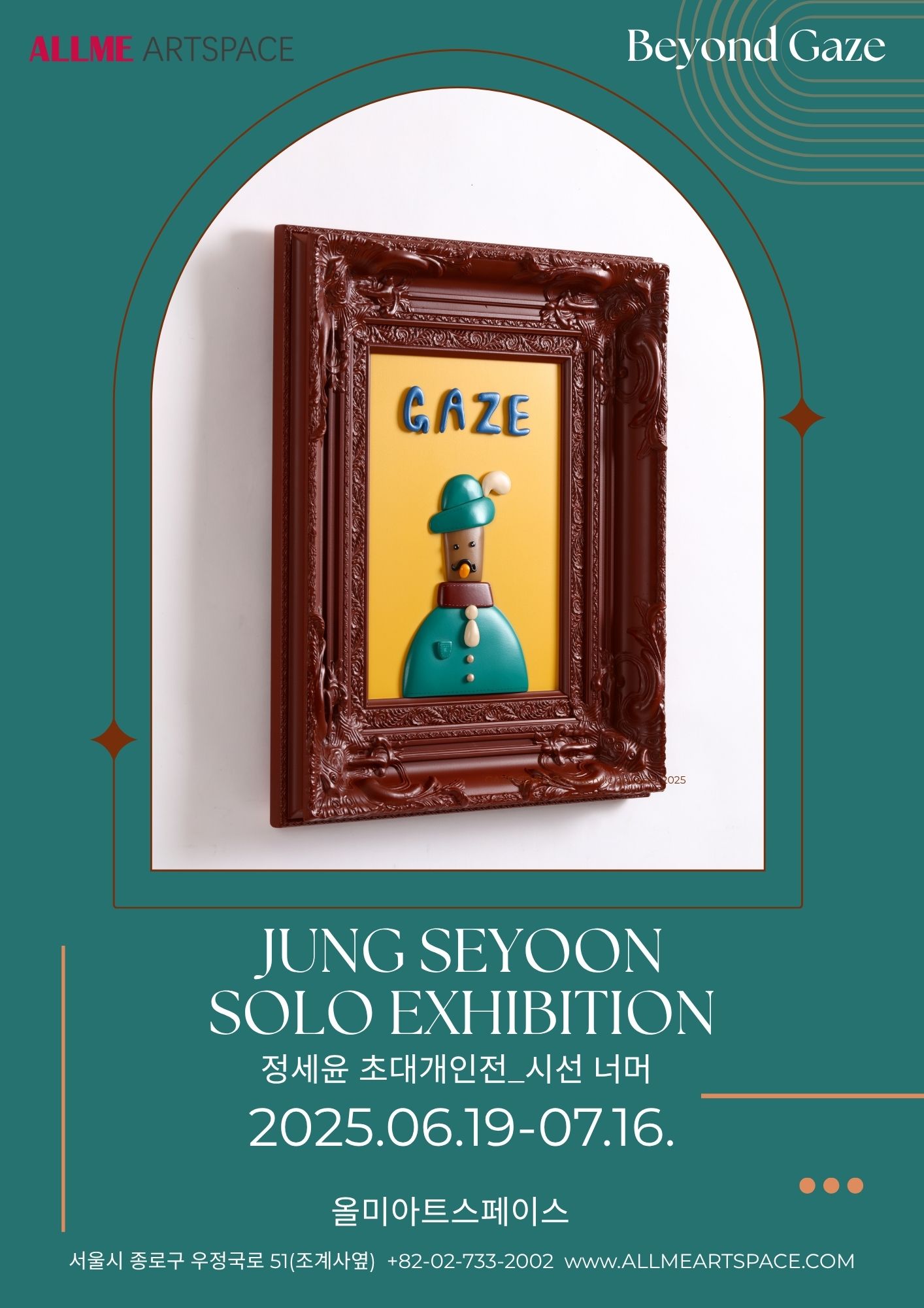 서울 종로구에 위치한 올미아트스페이스는 2025년 6월 19일부터 7월 16일까지 정세윤 작가의 초대 개인전 《Beyond Gaze: 시선 너머》를 개최합니다. 이번 전시는 작가의 신작을 중심으로, 귀엽고 동화적인 이미지 뒤에 숨겨진 사회적 메시지를 담은 작품들을 선보입니다.